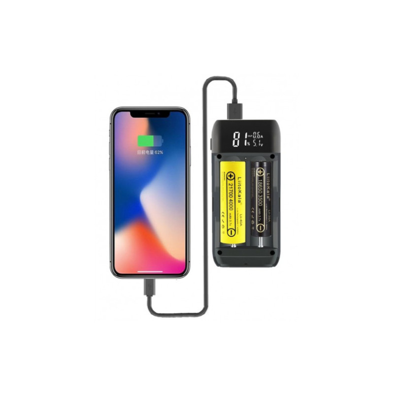 LiitoKala Lii-MP2 — це зарядний пристрій з розширеним функціоналом 2 в 1. Його можна використовувати не тільки для заряджання акумуляторів, а і як Power Bank для заповнення заряду в сторонніх гаджетах.