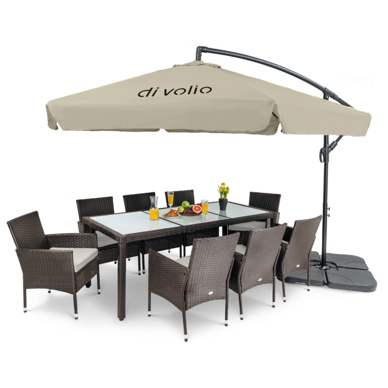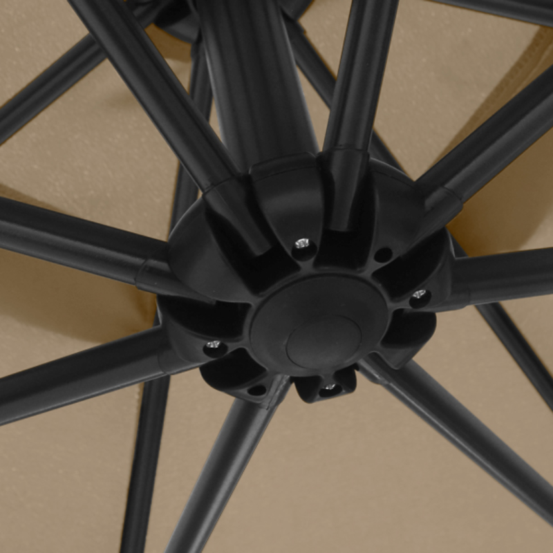Бічне кріплення верхньої частини дозволяє розташувати будь-який комплект меблів під парасолькою Di Volio EMPOLI так, щоб кожен гість насолоджувався приємною тінню навіть у неймовірну спеку.